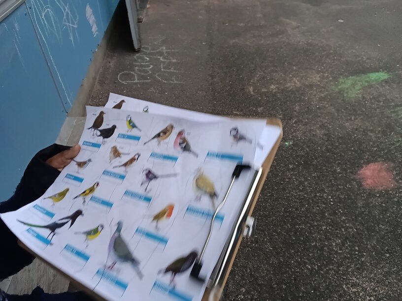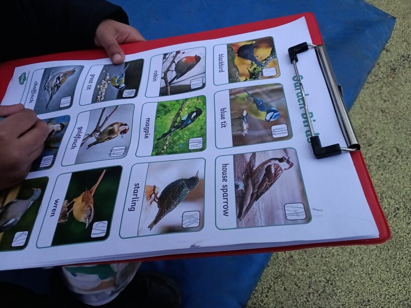 The children have been observing birds and reading information books to identify which species of birds have visited the Nursery garden. They made tally marks to record their findings.